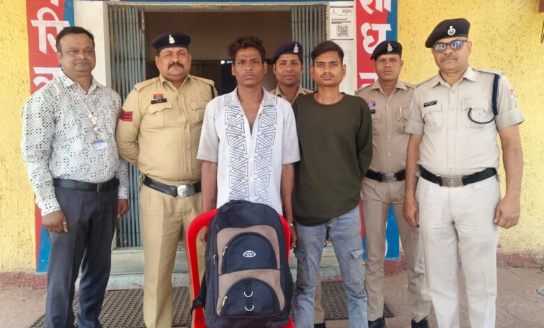जांजगीर : अकलतरा पुलिस को मुखबीर सूचना मिली कि 2 व्यक्ति रेल्वे स्टेशन  के पास एक बैग में भारी मात्रा में गांजा रखे हुए है कि सूचना पर मौके पर पहुंचकर रेलवे सुरक्षा बल के साथ मिलकर घेरा बंदी कर मुखबीर के बताये अनुसार व्यक्ति जो रेल्वे स्टेशन के पास एक बैग काला कलर का रखे हुए थे दो व्यक्ति मिले जिसका नाम पता पूछने पर 01. तरूण सेन निवासी ग्राम गरियाबंद रावणभाठा थाना गरियाबंद 02. प्रतीक मिश्रा निवासी बिरगांव धाना उरला जिला रायपुर  का रहने वाले बताये, पूछताछ करने पर मादक पदार्थ गांजा को उड़ीसा बेलपहाड़ से लाना बताएं एवं तलाशी लेने पर उनके पास से चार पैकेट में 4 केजी मादक पदार्थ गांजा कीमती दो लाख रूपये का बरामद हुआ जिसे समक्ष गवाहों के जप्त कर कब्जा पुलिस लिया गया आरोपियों के विरुद्ध धारा 20 बी एनडीपीएस एक्ट का अपराध पाए जाने पर विधिवात गिरफ्तार किया गया एवं दोनों आरोपियों को न्यायालय के समक्ष प्रस्तुत किया गया.