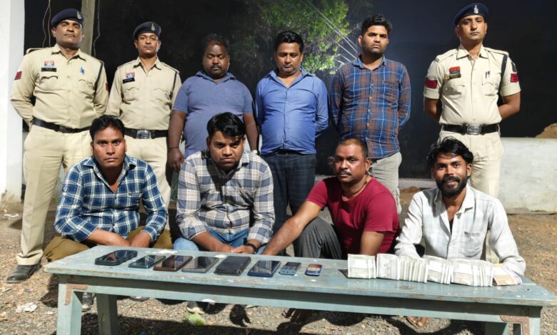 सक्ती जिले की थाना बाराद्वार पुलिस द्वारा विशेष अभियान के तहत अवैध जुआ खेलने वाले 07 जुआरियो के विरूध्द कार्यवाही कर नगदी रकम 17500 रूप्यें , 08 नग मोबाईल एवं 09 मोसा. किया गया जप्त।