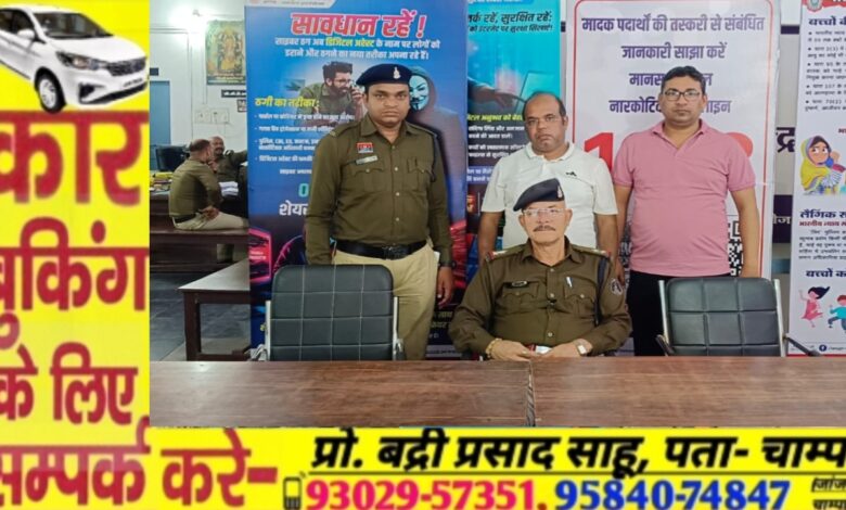 उक्त कार्यवाही में थाना प्रभारी चांपा निरीक्षक अशोक वैष्णव, उनि उमेन्द्र मिश्रा, आर0 आदित्य प्रताप, गोपेश्वर सिंह, म0आर0 निरमा टोप्पों एवं सायबर से प्र0आर0 विवेक सिंह का सराहनीय योगदान रहा.